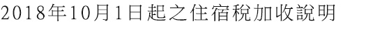 由於被列為此新政策的課稅對象,為配合政府規定,於2018年10月1日起,將改以「目前的房型價格+(每人每晚)住宿稅200日圓」酌收費用,不得不忍痛在此向愛戴